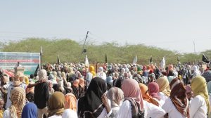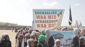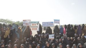 Fagaaraha macallim Aadam Xaashi Ceysrow ee magaalada oo ay soo xaadireen kumanaan qof ayay dadku kusoo bandhigen shucuurtooda, waxaana dadka dibax baxa kasoo qeyb galey ka mid ahaa Sheekh Aadan Suni, Abwaan Cabdi Waaxid Gamaadiid, golaha sallaadiinta iyo dhalinyarada ee magaalada iyo marti sharaf kale, waxaana la arkayey dad ka caraysan faragelinta Yahuudda, kuwaas oo sheegay inaan looga hortagi karin wax aaney Jihaad ahayn.